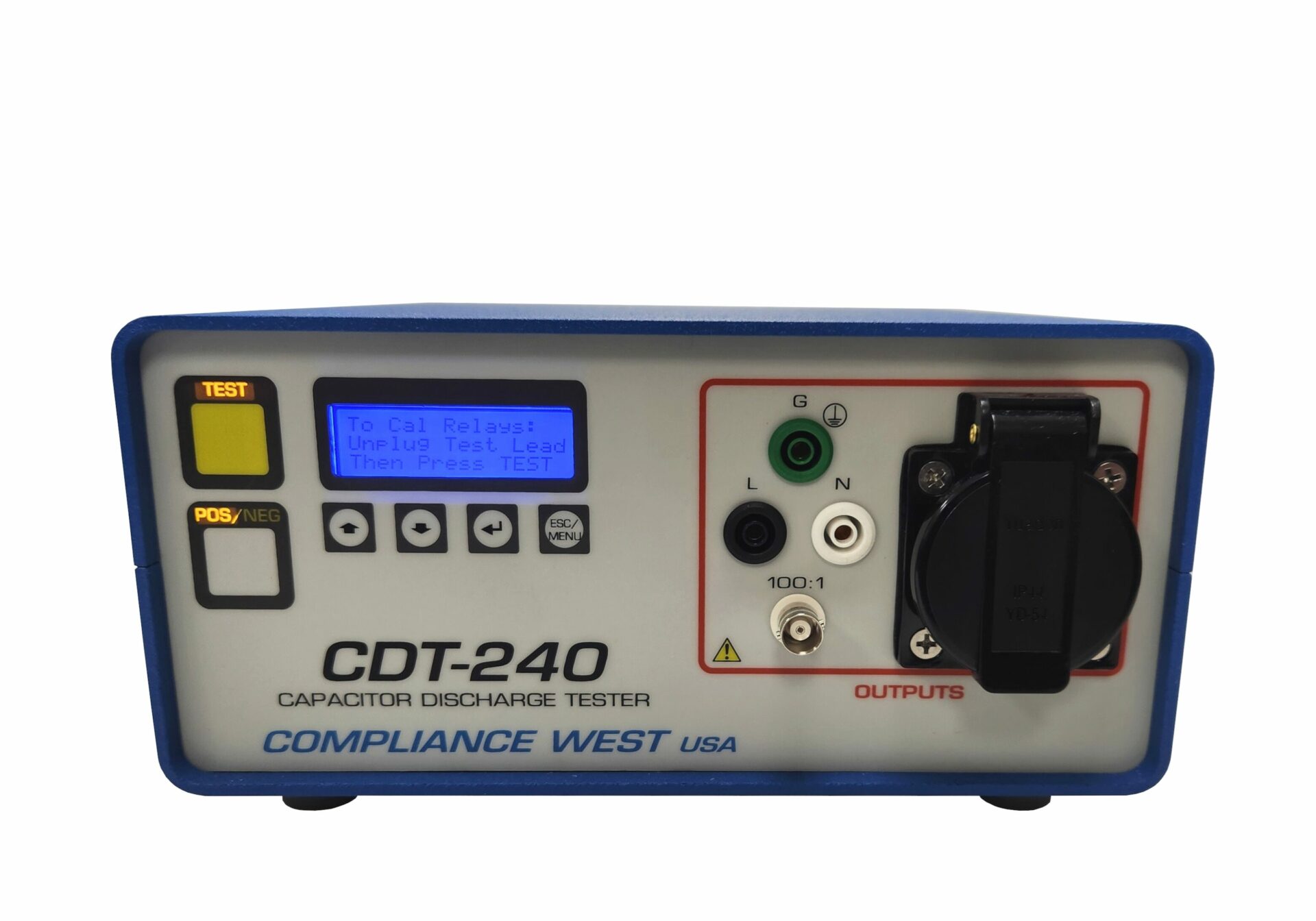 For IEC Testing of residual voltage after plug disconnect. The CDT-240 disconnects the line at the voltage peak and analyzes results to the requirements of various Standards, allowing quick results. Scope output for viewing decay waveform. Presets for EN 61010, EN 60065, EN 60950, EN 60601-1 and EN60335. Recommendations for Pluggable Type B equipment. NIST calibration supplied; A2LA calibration available. 15A option for testing large equipment.